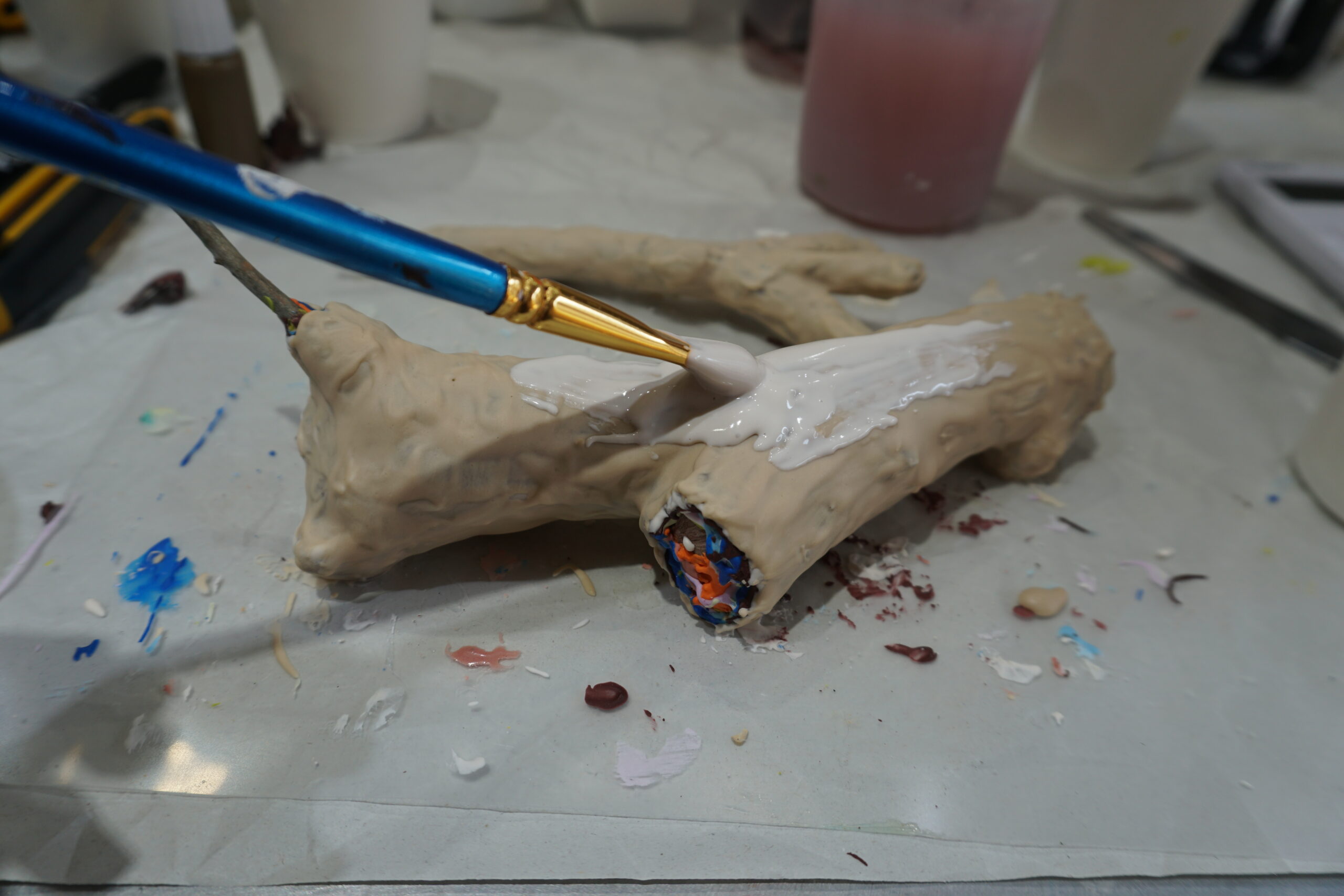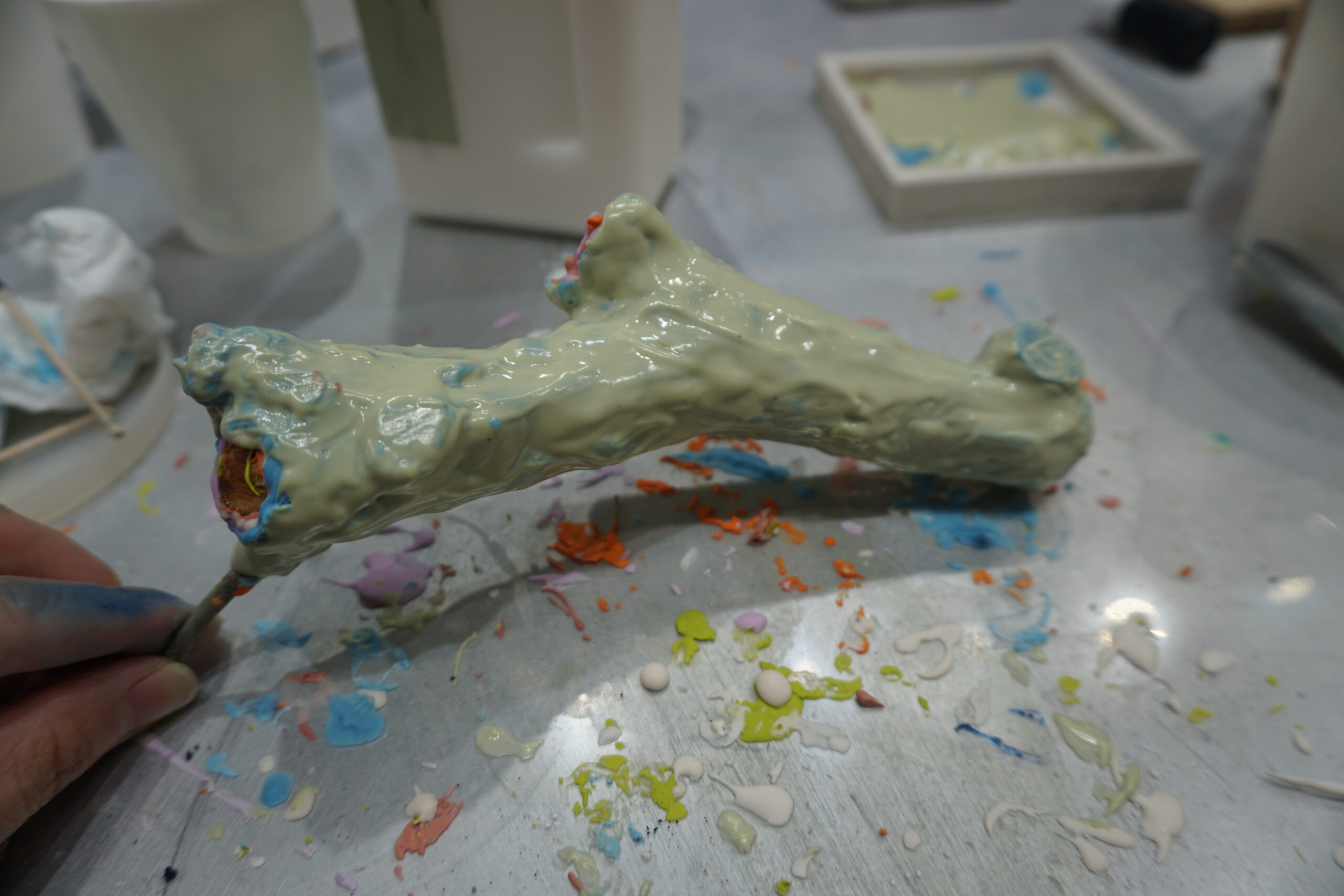 今回はバームクーヘンのように枝のまわりに着色したAC100を重ねてみました。