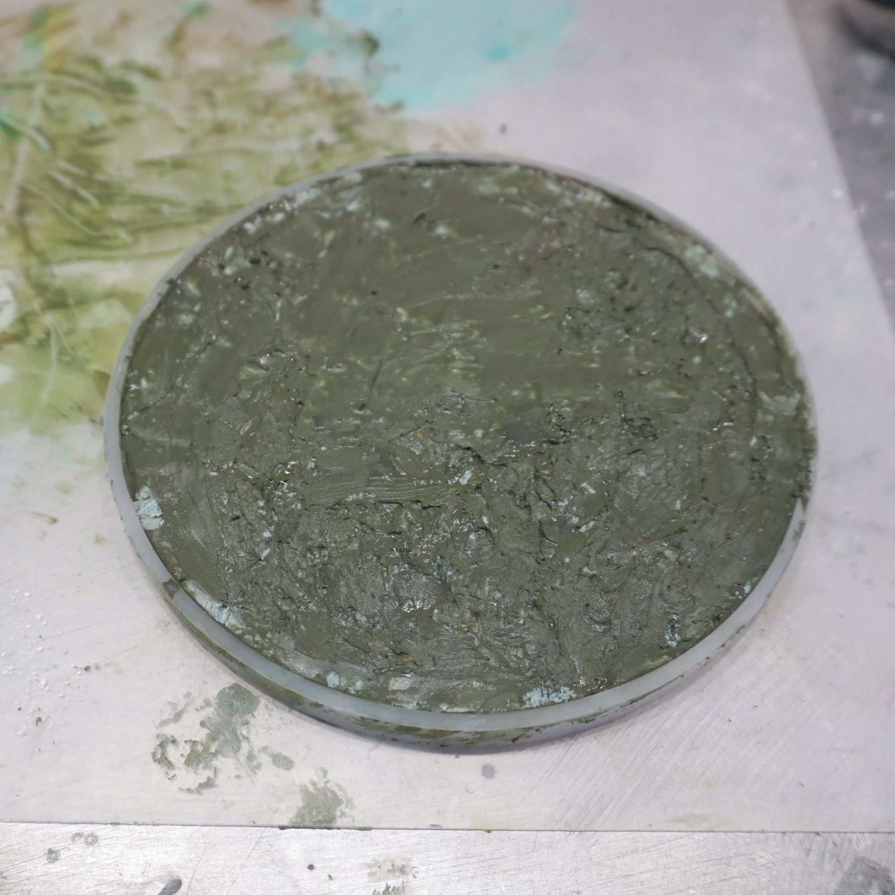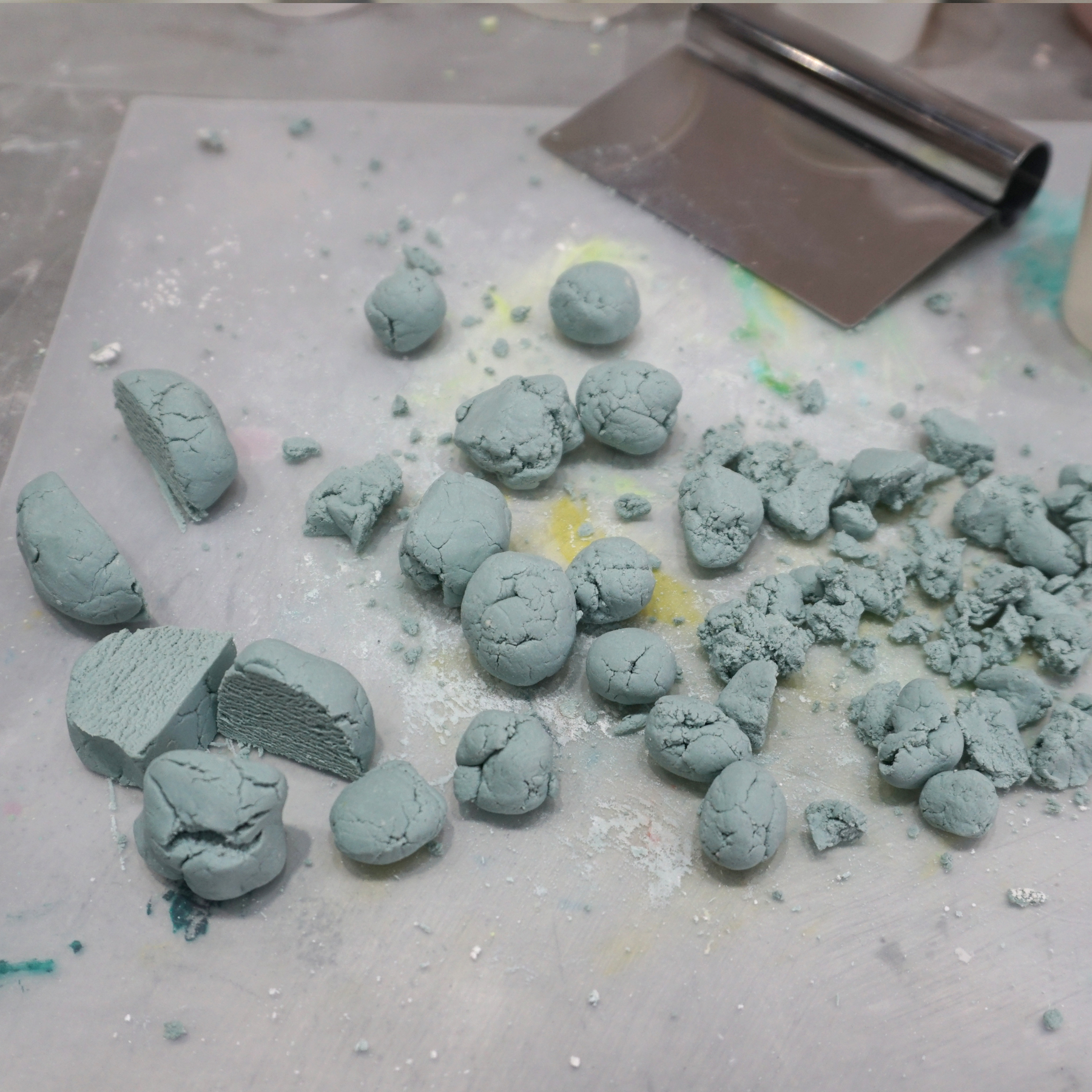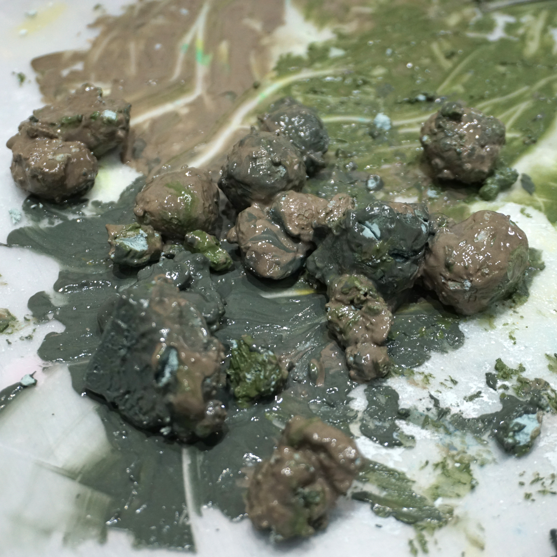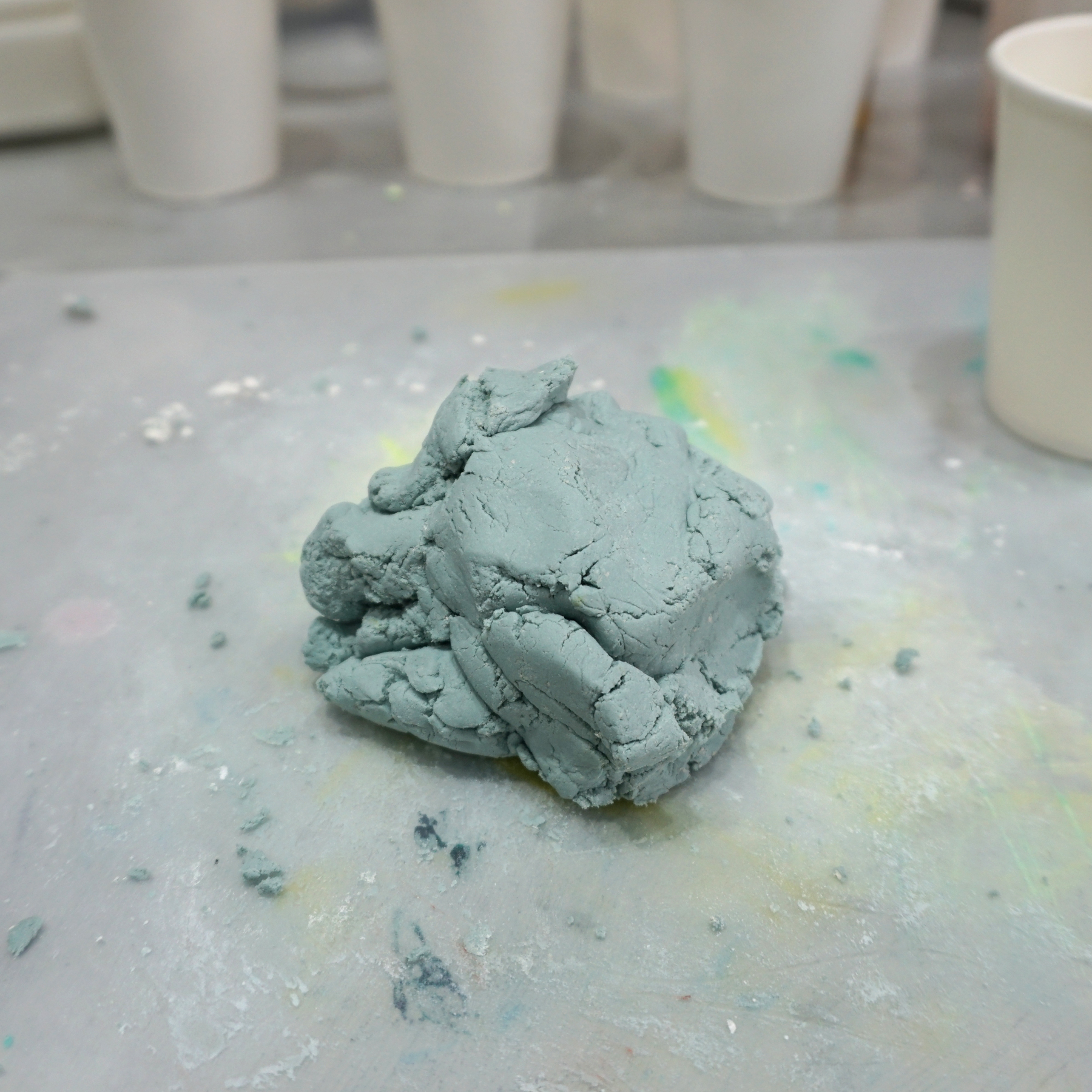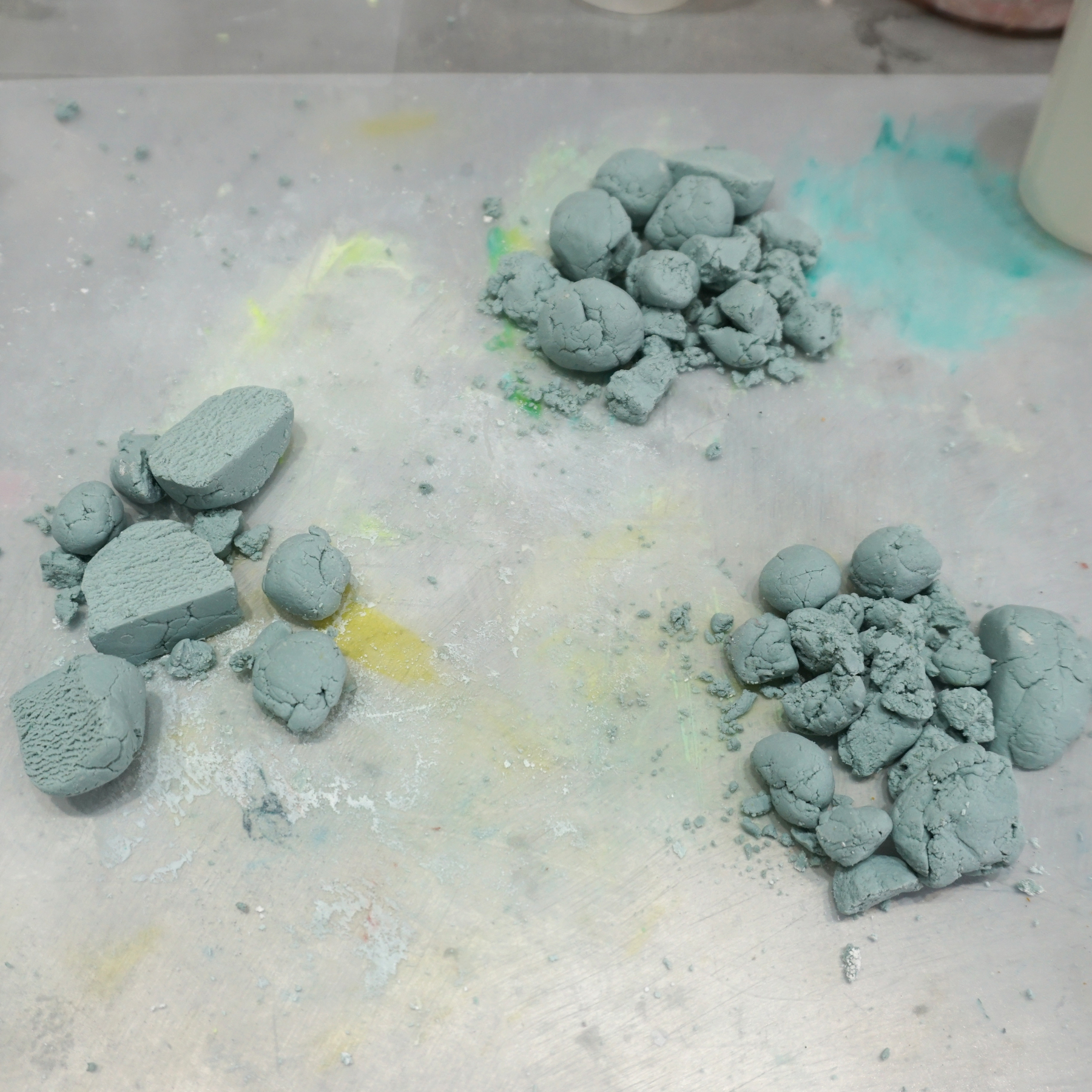 3.着色したAC100(50g×3=合計150g)をベースと混ぜ合わせます。これが先ほど作った小石の粒の”繋ぎ”になります。(完成した際に線として見えている部分です。)