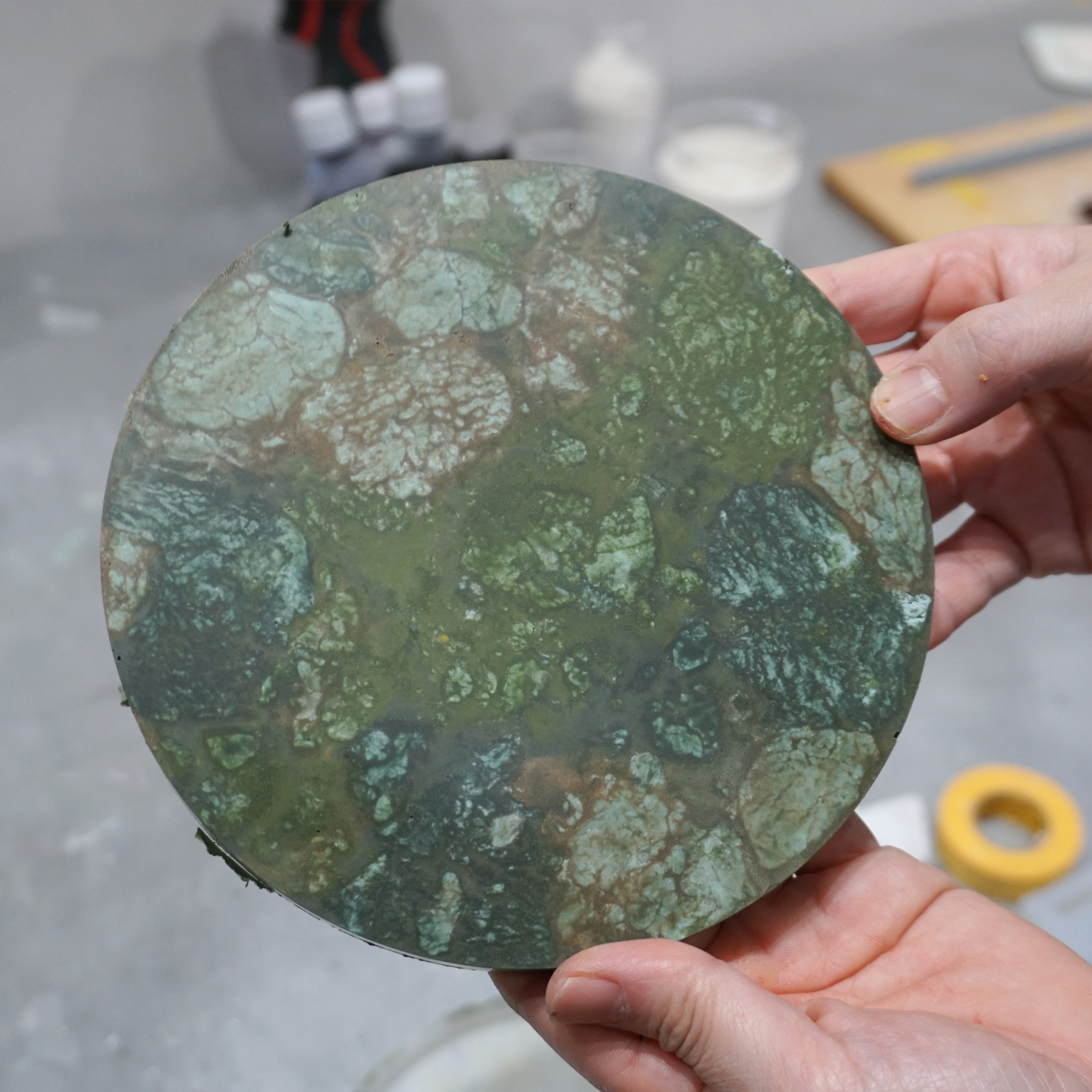 この実験シリーズは、数百年前のヨーロッパで発展した人工大理石を作る古典技法「スカリオーラ(Scagliola)」のアプローチを、ジェスモナイトLAB流に読み解いて新たな石をつくる試みです。